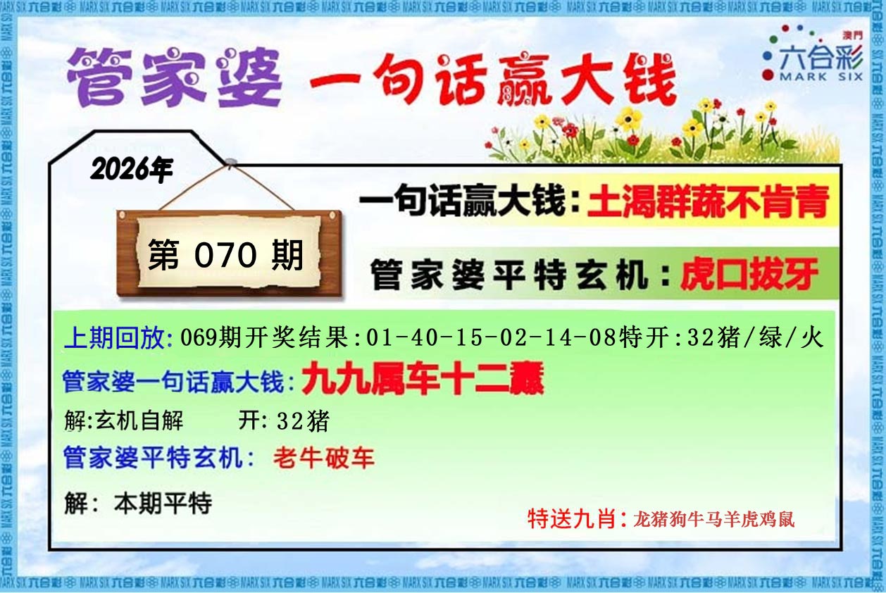 070期管家婆一句话:九九属车十二纛 特码:13 25 08 20 14 26 15 27 29 41 22 46 |